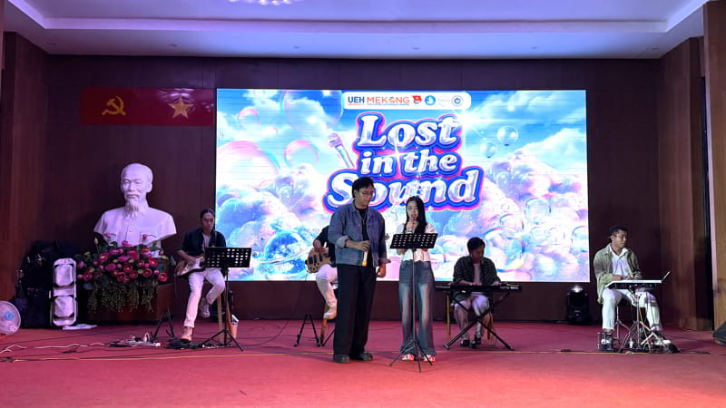 Ngày 18/11/2025, tại Hội trường A - UEH Mekong, CLB Văn nghệ Thanh niên trực thuộc Đoàn UEH Mekong đã tổ chức Đêm nhạc Acoustic Lost in the sound. Đây là một trong những hoạt động nằm trong chuỗi hoạt động chào đón Tân sinh viên Khóa 51 Đại học Chính quy. Chương trình không chỉ mang đến không gian âm nhạc đầy cảm xúc mà còn tạo cơ hội để sinh viên UEH Mekong giao lưu, kết nối với học sinh các trường THPT, góp phần lan toả tinh thần nhiệt huyết của tuổi trẻ UEH Mekong.