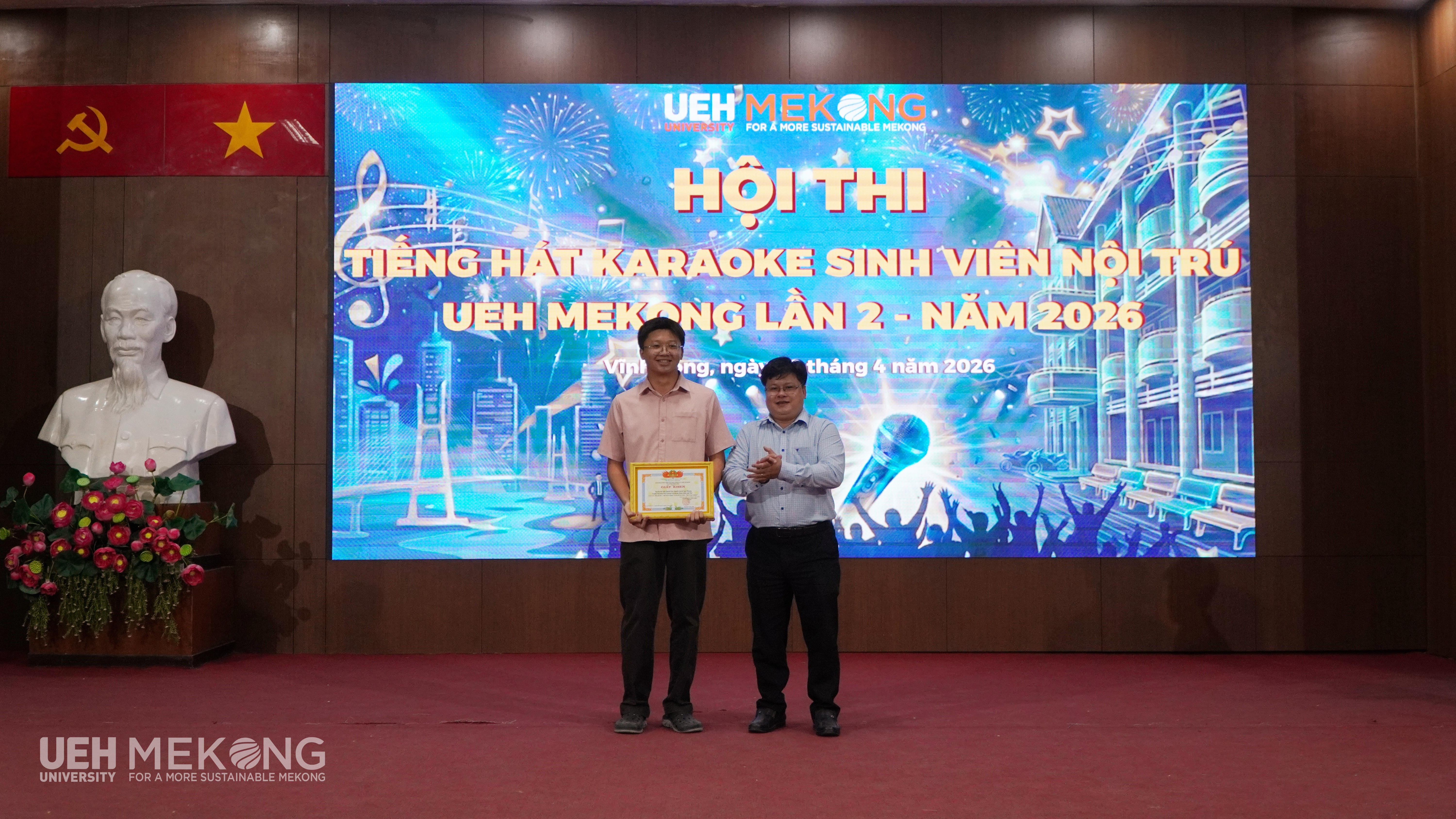 Hội thi Tiếng hát karaoke sinh viên nội trú lần 2 năm 2026 đã khép lại, nhưng dư âm của những giai điệu từ những bài hát và những tràng pháo tay cổ vũ nồng nhiệt của khán giả vẫn còn đọng lại. Thành công của chương trình không chỉ nằm ở những giải thưởng được trao, mà chính là những nụ cười rạng rỡ và sự gắn kết giữa các bạn sinh viên nội trú. Đây chắc chắn sẽ là kỷ niệm đẹp, đáng nhớ để các bạn sinh viên lưu giữ trong hành trình tuổi trẻ và quãng đời sinh viên của mình. Hi vọng những hoạt động như thế này sẽ tiếp tục là đòn bẩy tinh thần giúp các bạn thêm yêu mến mái nhà chung - Ký túc xá UEH Mekong.