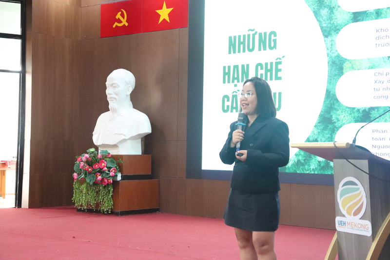 Phát biểu khai mạc Talkshow, ThS. Hồ Thiện Quyền đã gửi lời cảm ơn đến các diễn giả vì đã dành thời gian quý báu để chia sẻ những kiến thức và kinh nghiệm thực tiễn đến sinh viên tại UEH Mekong, đồng thời nhấn mạnh: Talkshow “Xu hướng Digital Marketing trong phát triển bền vững” là một hoạt động ý nghĩa, góp phần khơi dậy tinh thần học thuật và sự quan tâm của sinh viên đối với các xu hướng marketing hiện đại. Thông qua chương trình, các bạn không chỉ được cập nhật những kiến thức mới về digital marketing, mà còn rèn luyện tư duy chiến lược, khả năng ứng dụng công nghệ vào xây dựng thương hiệu bền vững - những yếu tố quan trọng để thích ứng trong bối cảnh kinh doanh đầy biến động. Đồng thời đây cũng được xem là bước đầu để các bạn có sự chuẩn bị tốt cho Cuộc thi Marketing CI 2025 - một cuộc thi có quy mô lớn do CLB thuộc Đoàn UEH Mekong tổ chức. Hy vọng sau buổi Talkshow, các bạn sinh viên sẽ tích lũy thêm nhiều kinh nghiệm bổ ích để chuẩn bị cho cuộc sắp tới và tiếp tục nuôi dưỡng niềm đam mê nghiên cứu, sáng tạo trong lĩnh vực marketing.