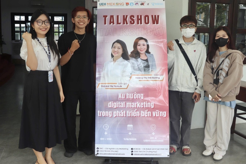 Sáng ngày 07/9/2025, tại Hội trường A, CLB Nghiên cứu Marketing và CLB Robot và Trí tuệ nhân tạo thuộc Đoàn Thanh niên UEH Mekong đã phối hợp tổ chức Talkshow với chủ đề “Xu hướng Digital Marketing trong phát triển bền vững”, thu hút gần 300 sinh viên tham dự. Talkshow được tổ chức nhằm mục đích xây dựng môi trường học thuật năng động cho sinh viên yêu thích Marketing, đồng thời giúp các bạn cập nhật xu hướng Digital Marketing mới nhất và khám phá cách ứng dụng các công cụ hiện đại vào chiến lược phát triển bền vững của doanh nghiệp và cũng là hoạt động mở màn Chuỗi hoạt động Marketing CI 2025 - Cuộc thi sáng tạo những short video quảng bá sản phẩm/dịch vụ hấp dẫn với vòng chung kết sẽ diễn ra vào ngày 02/11/2025.