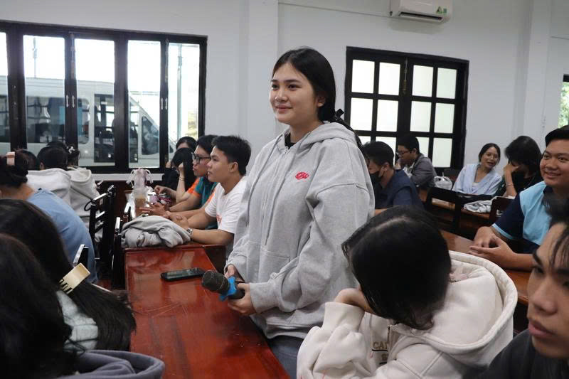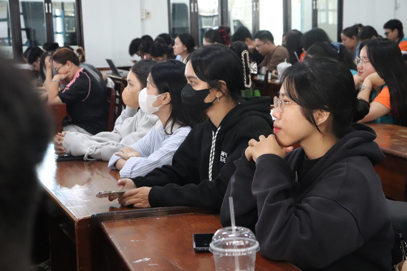 Sau phần trình bày của các diễn giả là phần trao đổi, thảo luận sôi nổi giữa sinh viên và diễn giả. Các bạn đã chủ động đặt ra nhiều câu hỏi thực tế, bám sát chủ đề Digital Marketing trong phát triển bền vững, thể hiện sự quan tâm sâu sắc đến những xu hướng mới của ngành. Thông qua phần hỏi - đáp, diễn giả đã chia sẻ nhiều kiến thức thực tiễn và kinh nghiệm giá trị như: cách doanh nghiệp ứng dụng công nghệ số để tối ưu hiệu quả truyền thông; phương pháp khai thác dữ liệu; tiêu chí xây dựng chiến lược marketing gắn liền với phát triển bền vững; cũng như những kỹ năng mà sinh viên cần rèn luyện để thích ứng với bối cảnh kinh doanh số hóa.