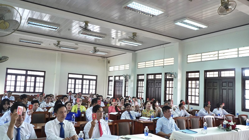 Đảng viên toàn Đảng bộ bộ phận biểu quyết các chỉ tiêu chủ yếu