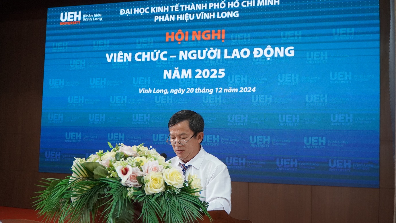 Ngày 20/12/2024, tại UEH Vĩnh Long, Ban Giám đốc Phân hiệu phối hợp với Ban Chấp hành Công đoàn cơ sở tổ chức Hội nghị Viên chức - người lao động năm 2025. Hội nghị nhằm tổng kết, đánh giá toàn diện kết quả đạt được trong năm 2024, xác định phương hướng và mục tiêu cho năm 2025, đồng thời triển khai lấy ý kiến góp ý cho chiến lược UEH Vĩnh Long giai đoạn 2025 – 2030, tầm nhìn đến năm 2040. Bên cạnh đó, đây còn là diễn đàn quan trọng để UEH Vĩnh Long cùng nhìn nhận lại những thành tựu đã đạt được, phân tích những tồn tại và hạn chế, từ đó xây dựng định hướng và nhiệm vụ cho năm tiếp theo, nhằm phát huy sức mạnh tập thể của đội ngũ viên chức và người lao động, hướng đến mục tiêu phát triển chung của Phân hiệu.