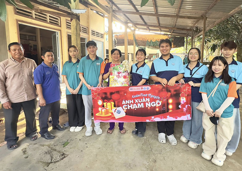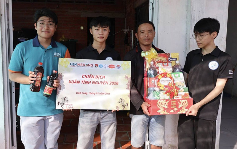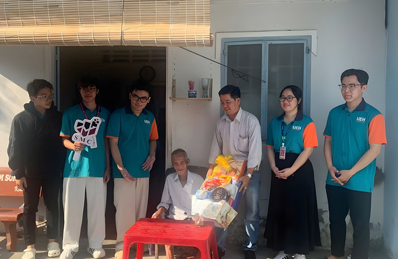 Từ nguồn kinh phí vận động, Đoàn – Hội UEH Mekong đã triển khai nhiều hoạt động chăm lo thiết thực, hướng đến các đối tượng chính sách và những hoàn cảnh còn nhiều khó khăn trên địa bàn tỉnh. Theo đó, Đoàn – Hội đã tổ chức thăm hỏi và tặng quà gia đình Mẹ Việt Nam Anh hùng Nguyễn Thị Tám, thể hiện lòng tri ân sâu sắc đối với những hy sinh to lớn của các thế hệ đi trước; đồng thời trao quà Tết cho 12 hộ gia đình chính sách trên địa bàn tỉnh Vĩnh Long.