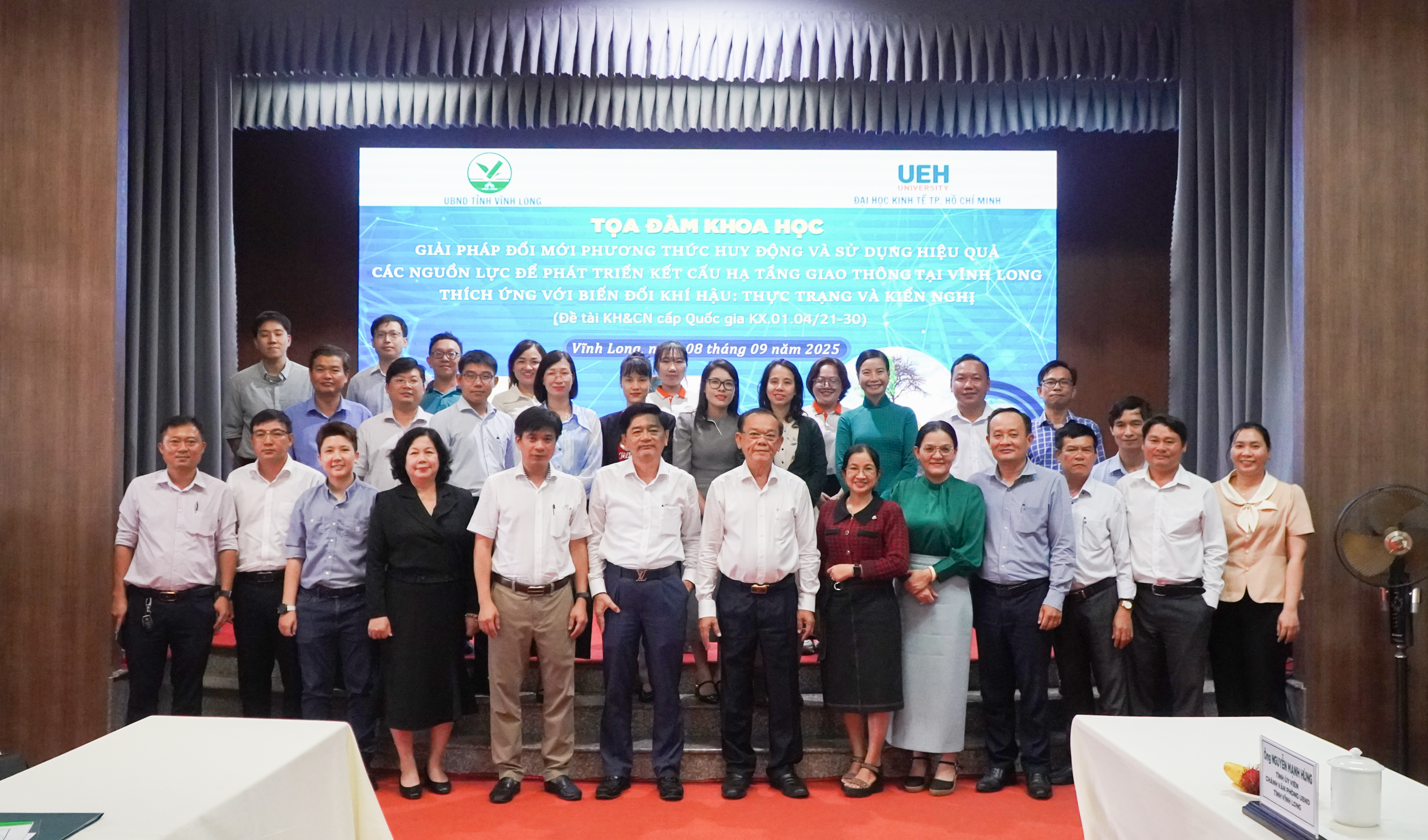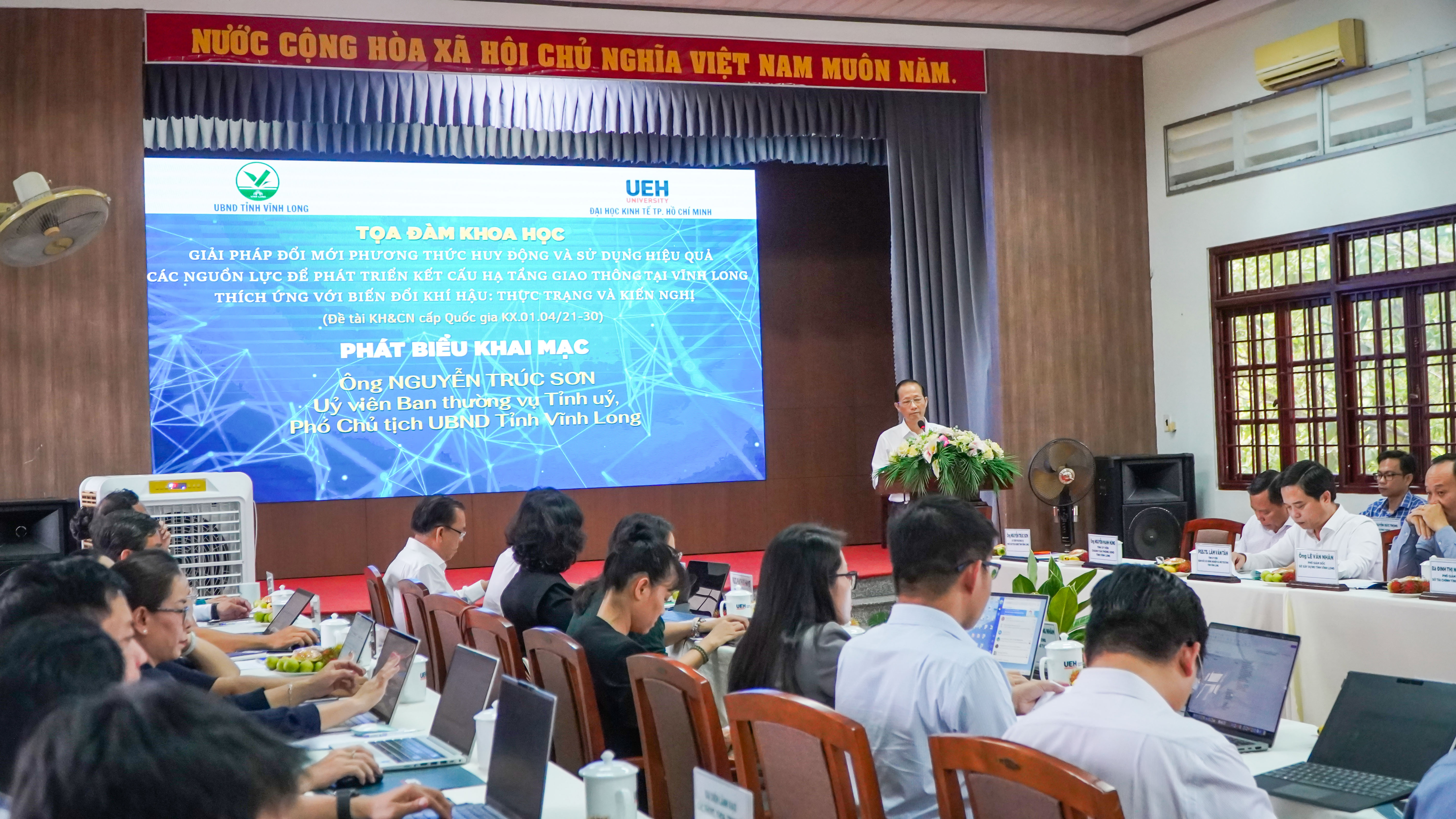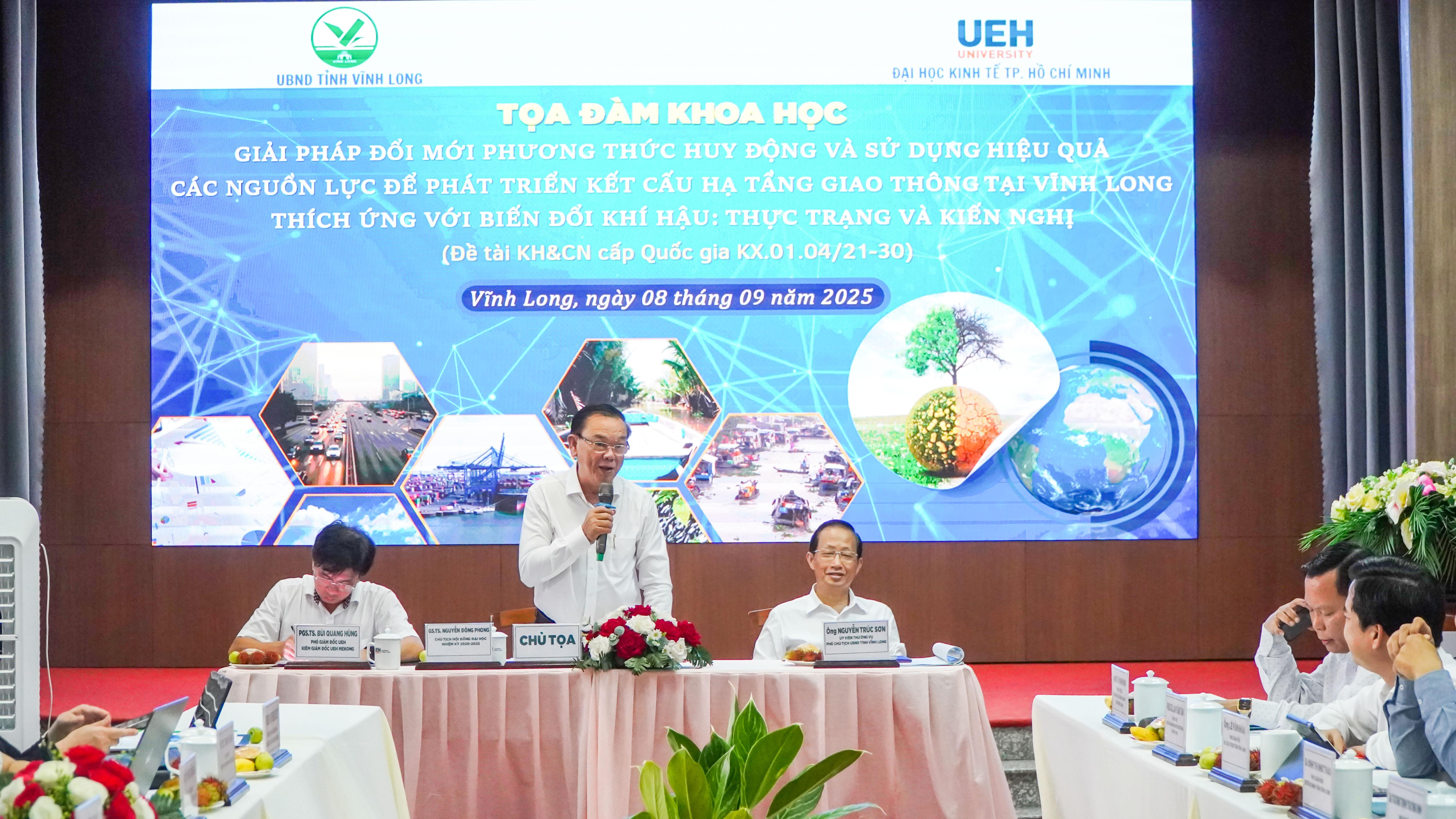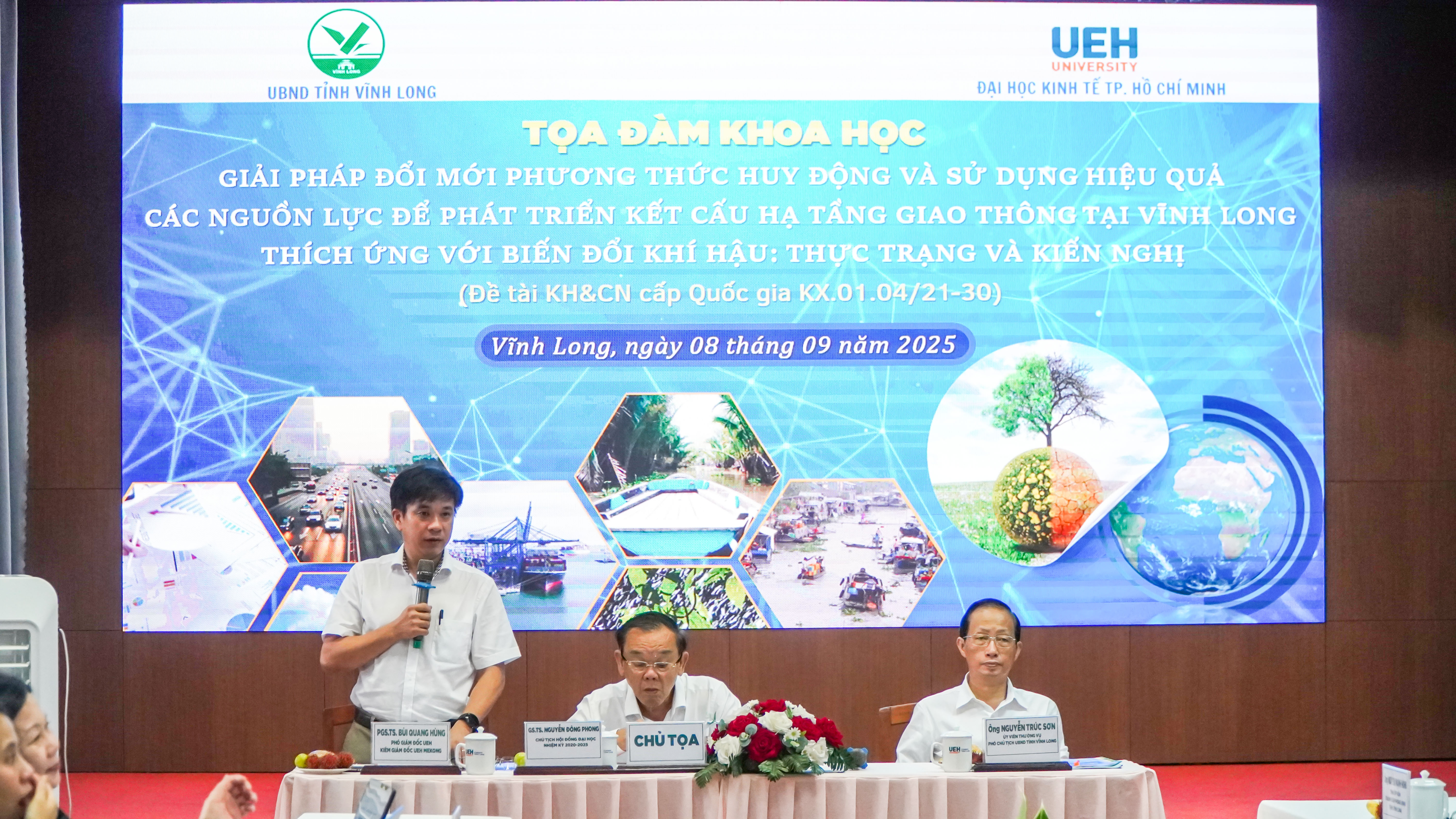 Tọa đàm khoa học “Giải pháp huy động và sử dụng hiệu quả nguồn lực để phát triển hạ tầng giao thông Vĩnh Long thích ứng biến đổi khí hậu” tại UEH Mekong