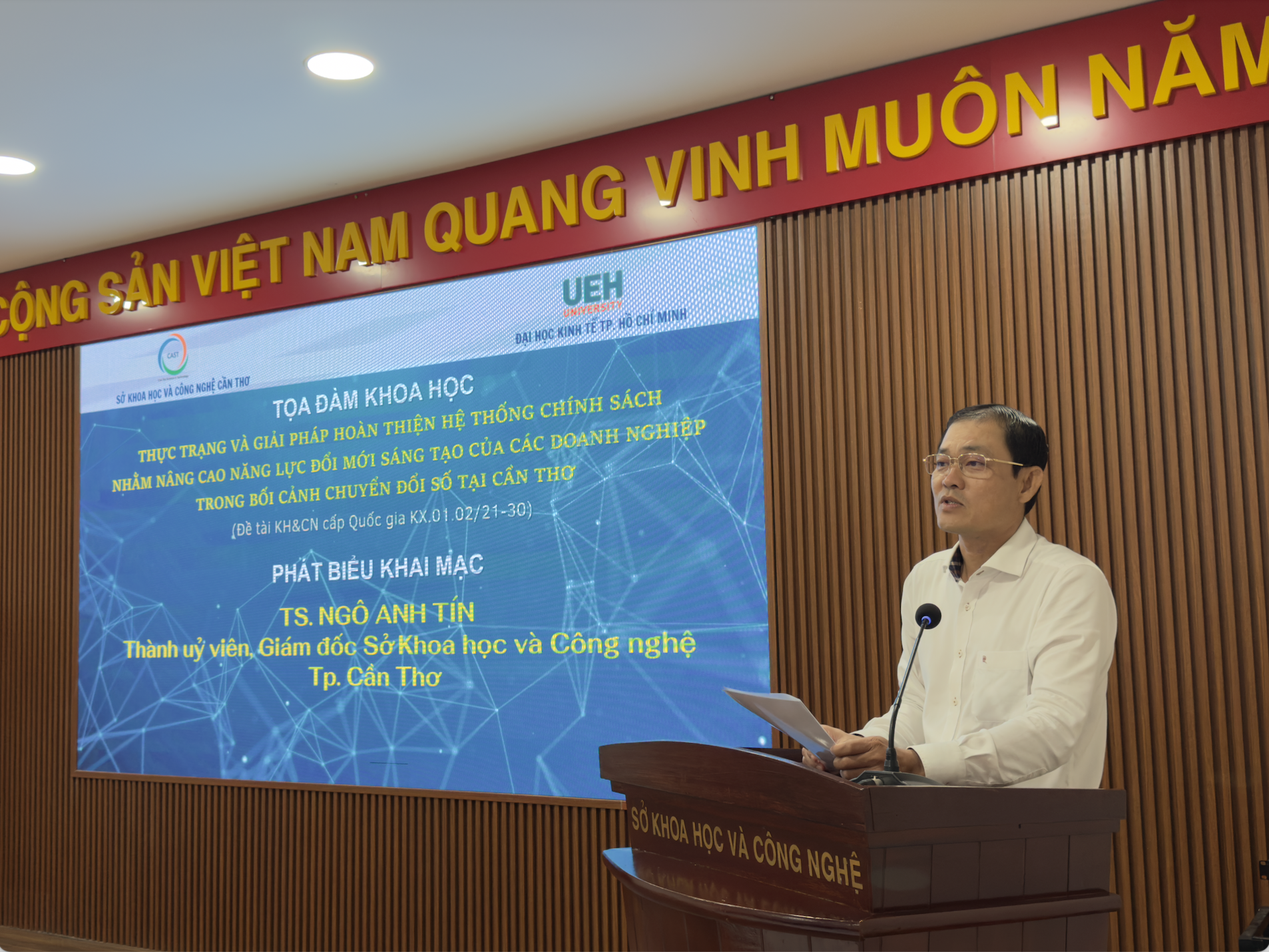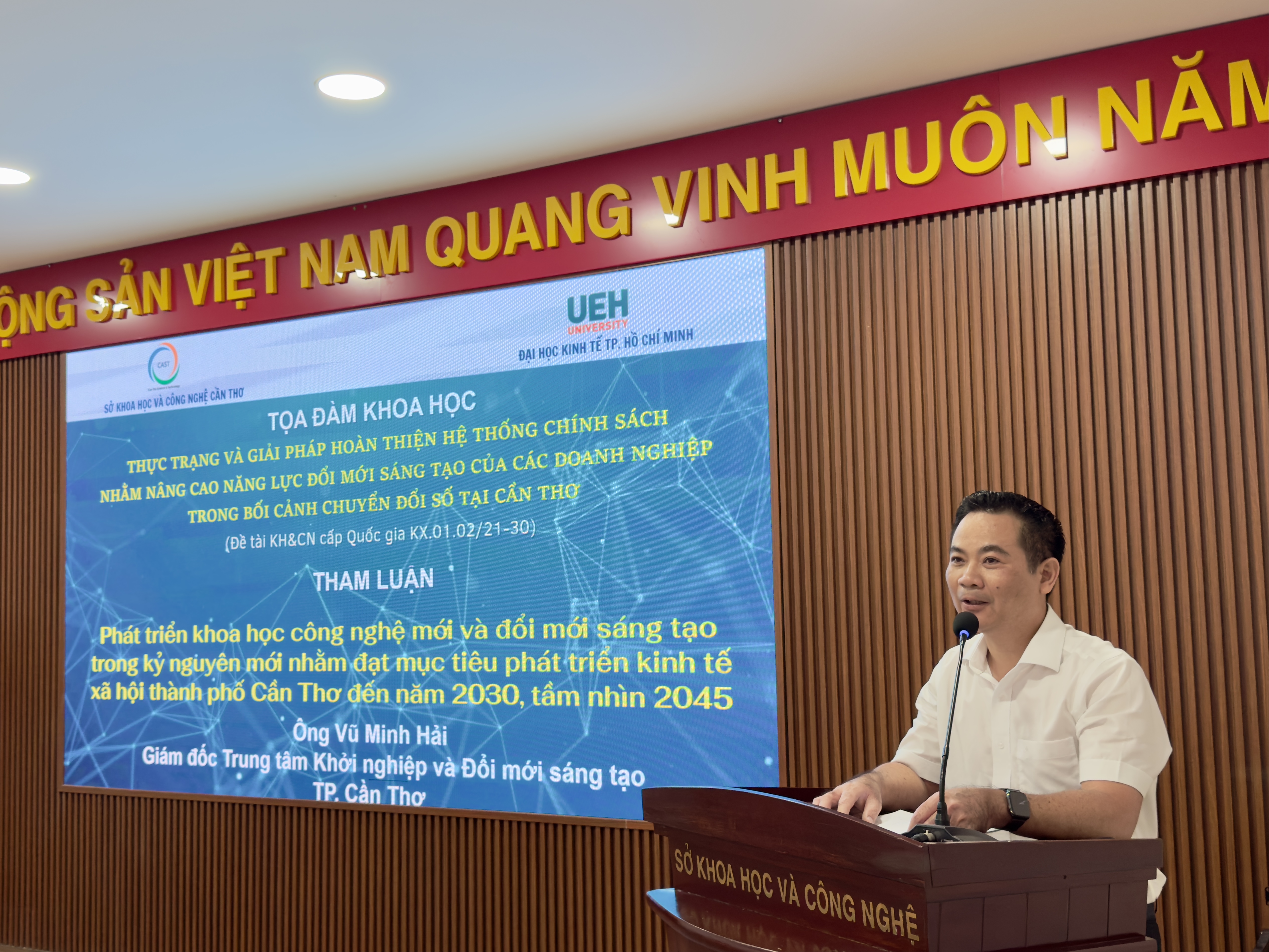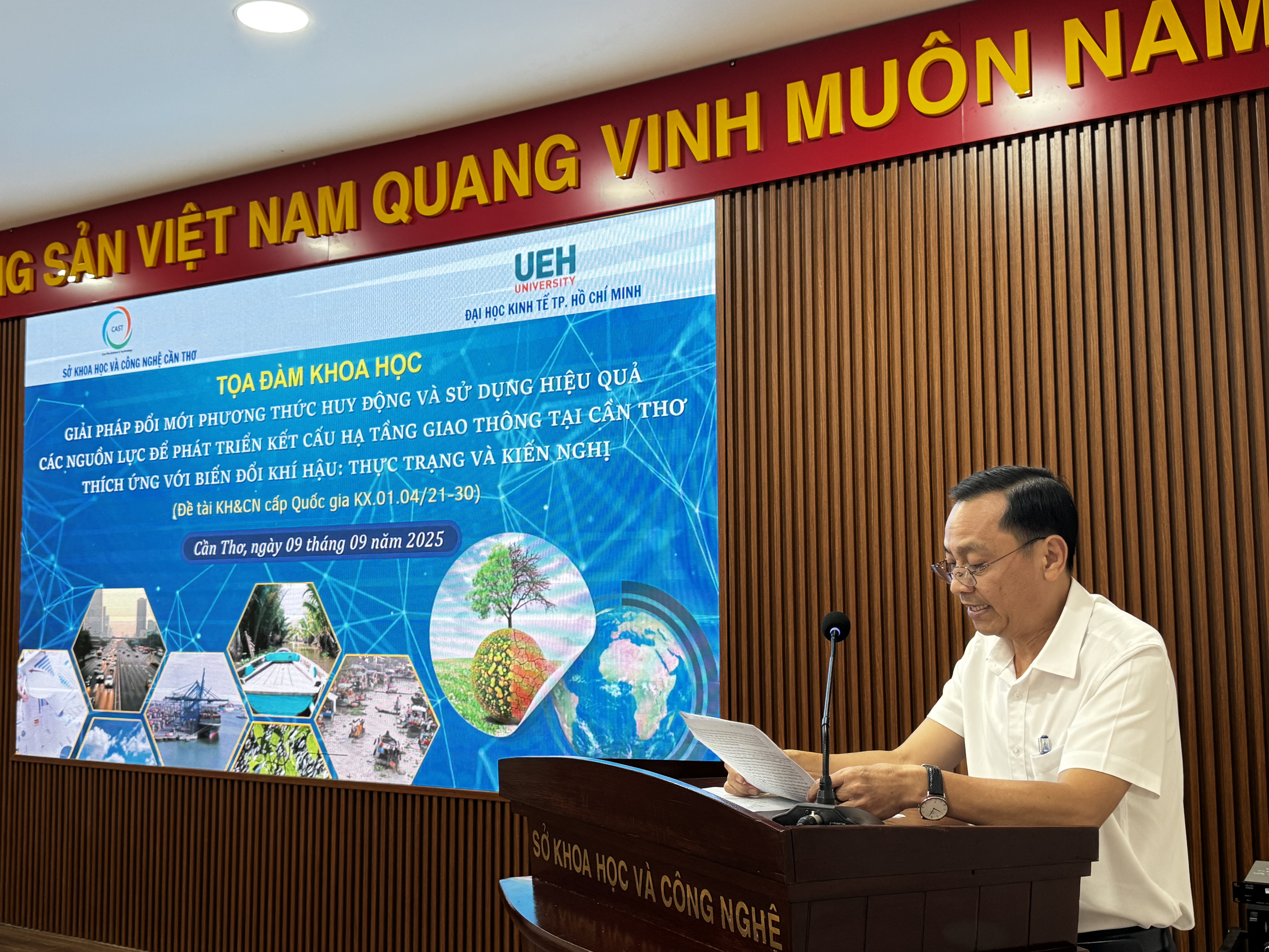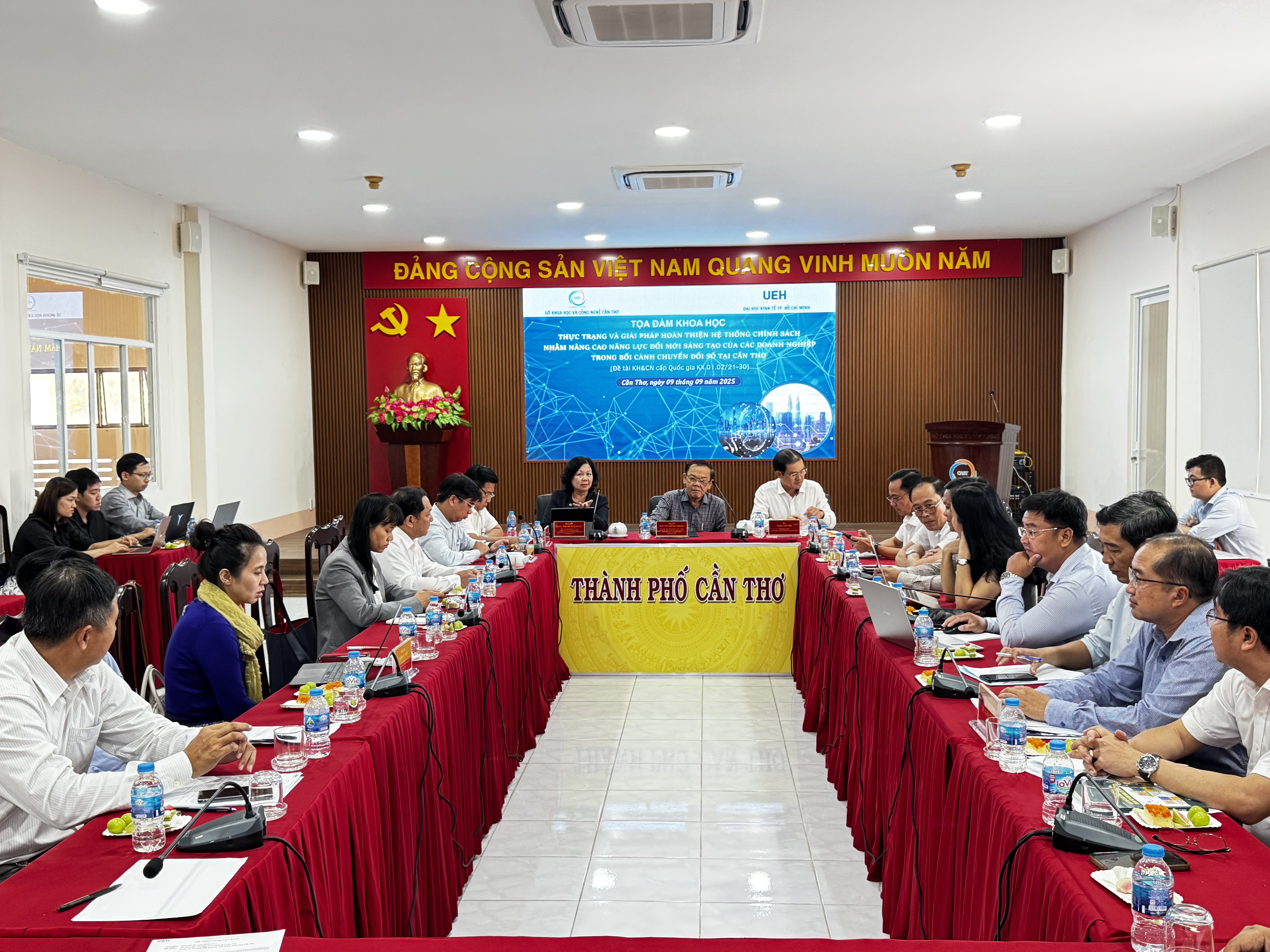 Ngày 09/9/2025, tại trụ sở Sở Khoa học và Công nghệ thành phố Cần Thơ, Đại học Kinh tế Thành phố Hồ Chí Minh phối hợp cùng Sở Khoa học và Công nghệ Cần Thơ đã tổ chức Tọa đàm khoa học với chủ đề “Nâng cao năng lực đổi mới sáng tạo của doanh nghiệp trong bối cảnh chuyển đổi số và giải pháp phát triển hạ tầng giao thông thích ứng với biến đổi khí hậu”.