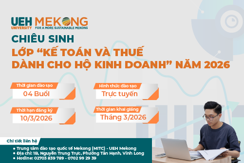 Ngày 11/01/2026, Phân hiệu Đại học Kinh tế Thành phố Hồ Chí Minh tại tỉnh Vĩnh Long (UEH Mekong) chính thức khởi động chương trình Campus Tour với chủ đề “Khám phá tiềm năng cùng UEH Mekong”. Đây là hoạt động nằm trong chuỗi chương trình tư vấn tuyển sinh, hướng nghiệp bền vững năm 2026 của UEH Mekong. Chương trình đã chào đón hơn 500 học sinh lớp 12, cùng Quý Thầy, Cô đến từ Trường THPT Tam Bình, Trường THPT Hoàng Thái Hiếu (tỉnh Vĩnh Long) và Trường THPT Lấp Vò 3 (tỉnh Đồng Tháp) đến tham quan, trải nghiệm các hoạt động học tập – sinh hoạt và tham gia tư vấn tuyển sinh, hướng nghiệp.