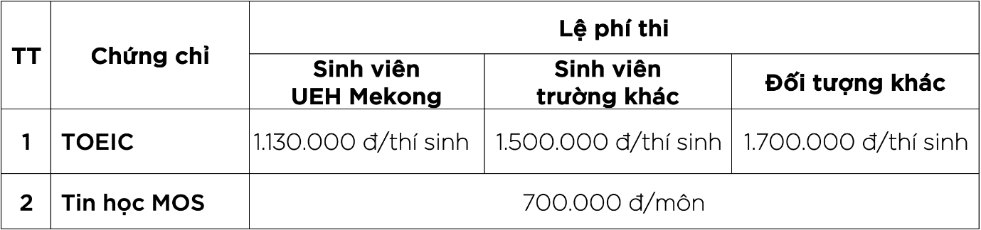 - UEH - Phân hiệu Vĩnh Long thông báo tổ chức hội đồng thi chứng chỉ Quốc tế - Tiếng Anh TOEIC, tin học IC3 và MOS - Khóa 8 năm 2024