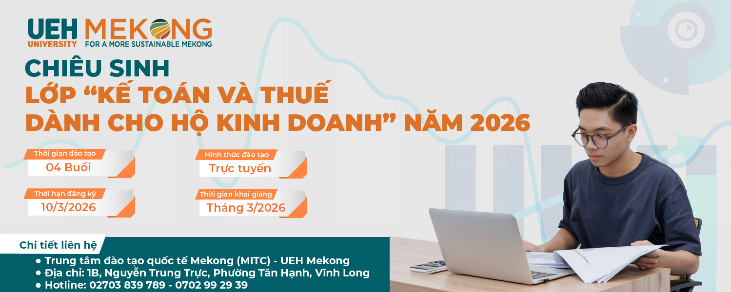 Phân hiệu Đại học Kinh tế Thành phố Hồ Chí Minh tại tỉnh Vĩnh Long (UEH Mekong) thông báo chiêu sinh lớp “Kế toán và thuế dành cho hộ kinh doanh” như sau: